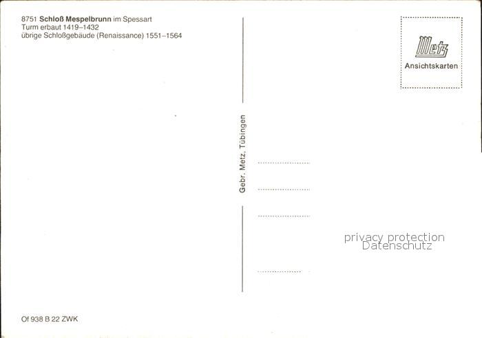Mespelbrunn Schloss Turm Renaissance Gebaeude Geschichte postalisch nicht gelaufen Erhaltung siehe scans