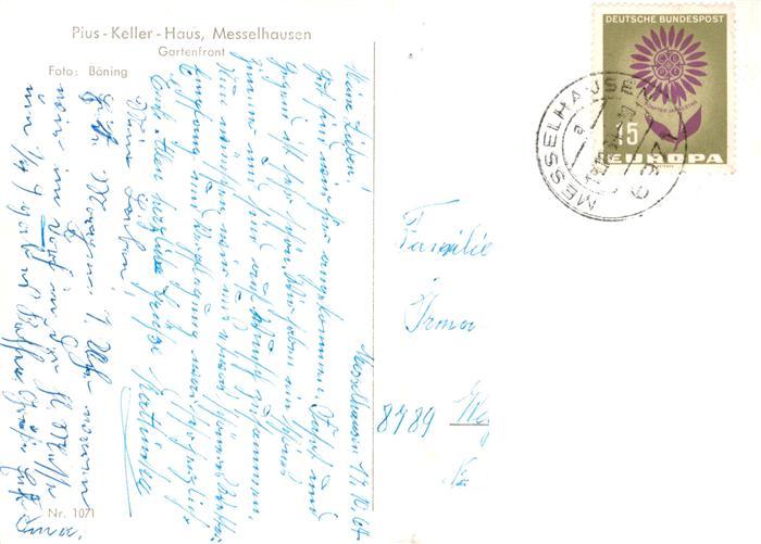 73879553 alte Postkarte Messelhausen Pius-Keller-Haus Gartenfront postalisch gelaufen Erhaltung siehe scans [FriedD77] KatCode: 11110008128139
