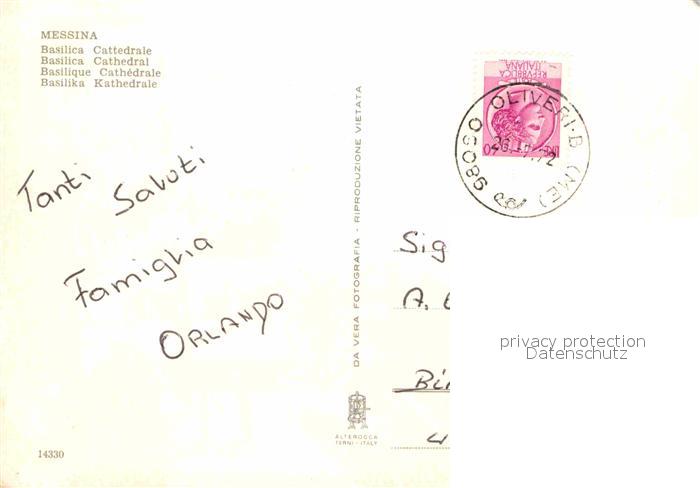 old postcard Messina Basilica Cattedrale postalisch gelaufen Erhaltung siehe scans [FriedD77]