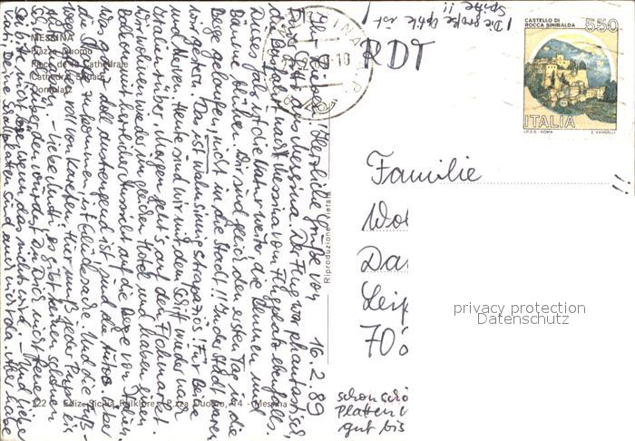 old postcard Messina Piazza Duomo Domplatz postalisch gelaufen Erhaltung siehe scans