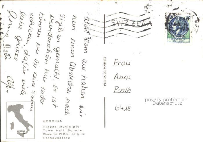 old postcard Messina Rathausplatz postalisch gelaufen Erhaltung siehe scans