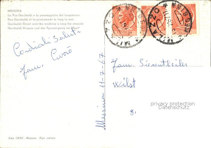 old postcard Messina Via Garibaldi postalisch gelaufen Erhaltung siehe scans