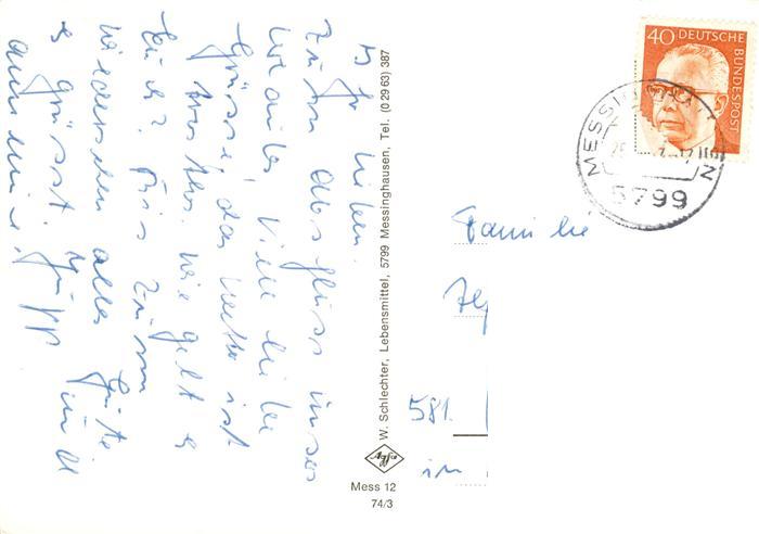 73871553 alte Postkarte Messinghausen Brilon an der Bahnlinie Hagen Kassel postalisch gelaufen Erhaltung siehe scans [WerneD78] KatCode: 11110005958012