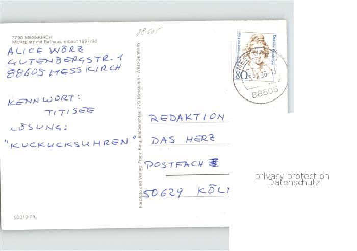 71921096 alte Postkarte Messkirch Marktplatz mit Rathaus postalisch gelaufen Erhaltung siehe scans KatCode: 11110008437078