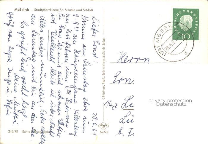 71832817 alte Postkarte Messkirch Stadtpfarrkirche St. Martin Schloss postalisch gelaufen Erhaltung siehe scans KatCode: 11110008437078