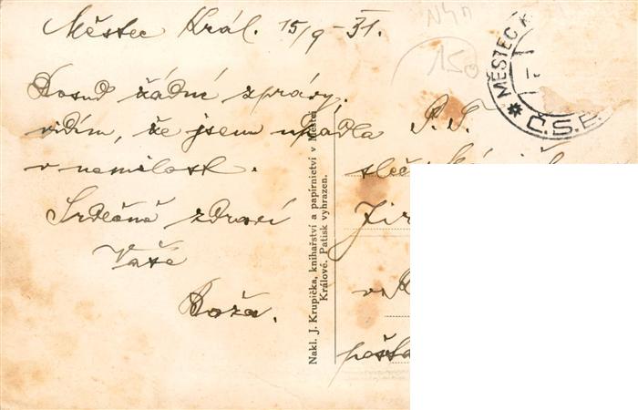 old postcard Mestec Kralove Koenigstaedtl Koenigstadtl CZ Namesti postalisch gelaufen Erhaltung siehe scans [FriedD77]