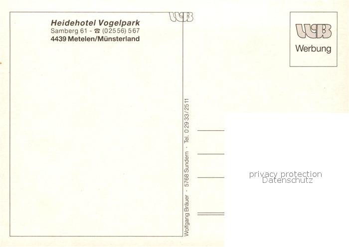 73542345 Metelen Heidehotel Vogelpark postalisch nicht gelaufen Erhaltung siehe scans [KathaD81] KatCode: 11110005566052