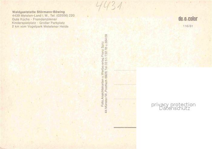 32839016 Metelen Waldgaststaette Stoermann Boewing postalisch nicht gelaufen Erhaltung siehe scans [KathaD81] KatCode: 11110005566052