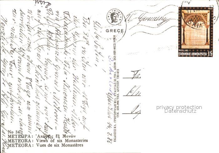 old postcard Meteora Kloster postalisch gelaufen Erhaltung siehe scans