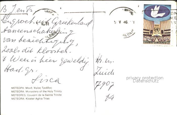 old postcard Meteora Kloster Aghia Trias postalisch gelaufen Erhaltung siehe scans