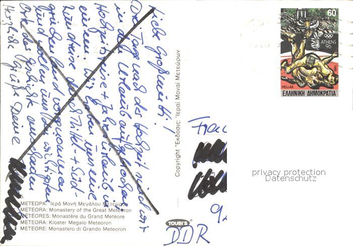 old postcard Meteora Kloster Megalo Meteoron postalisch gelaufen Erhaltung siehe scans