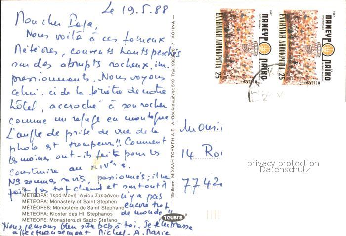old postcard Meteora Monastere de Saint Stephane Kloster Hl. Stephanos postalisch gelaufen Erhaltung siehe scans