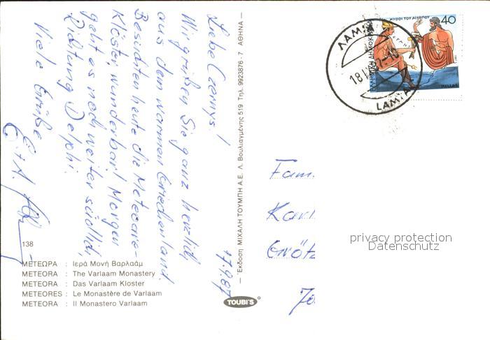 old postcard Meteora Monastere de Varlaam Kloster postalisch gelaufen Erhaltung siehe scans