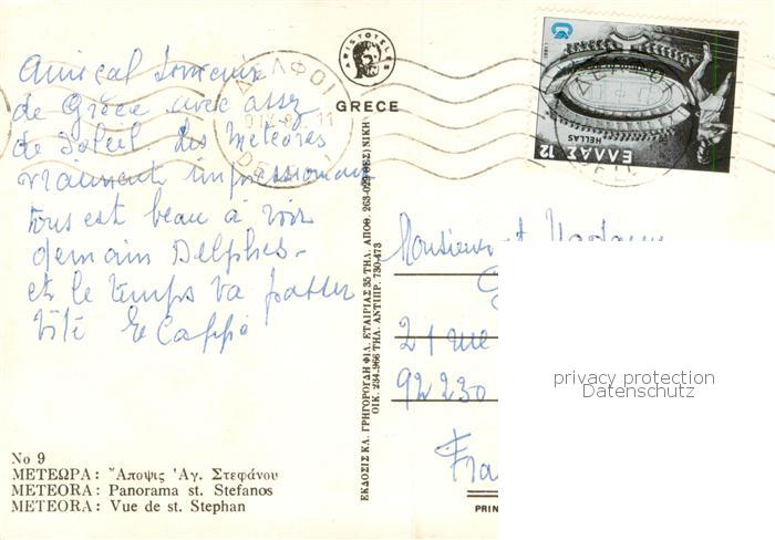 old postcard Meteora Monastero Metamorphoris Greece Vue de St. Stephan Kloster postalisch gelaufen Erhaltung siehe scans [FriedD77]