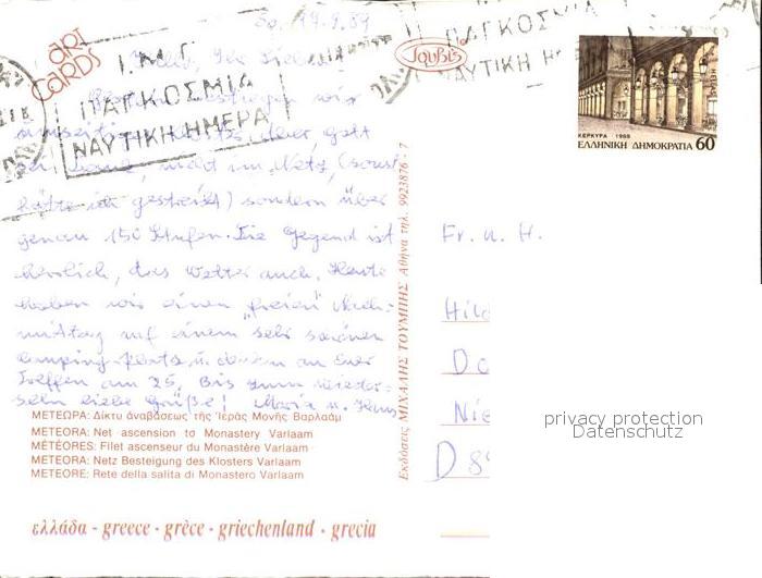 old postcard Meteora Netz Besteigung Klosters Varlaam postalisch gelaufen Erhaltung siehe scans