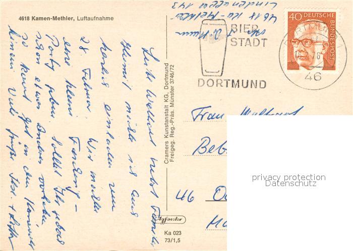 73730411 alte Postkarte Methler Fliegeraufnahme postalisch gelaufen Erhaltung siehe scans [WerneD78] KatCode: 11110005978020