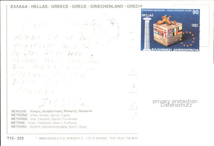 old postcard Methoni Burg postalisch gelaufen Erhaltung siehe scans