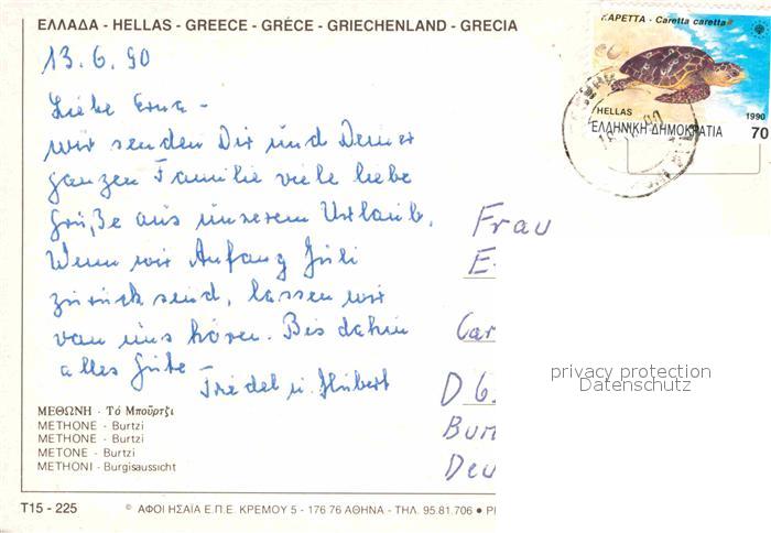 old postcard Methoni Burg postalisch gelaufen Erhaltung siehe scans [AndreD76]