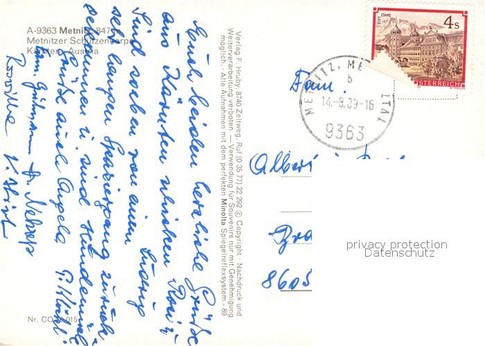 73336736 alte Postkarte Metnitz Metnitzer Schuetzenkorps postalisch gelaufen Erhaltung siehe scans [WerneD78] KatCode: 11390213020518