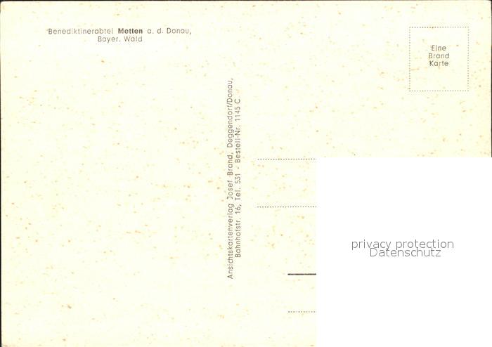 72031076 Metten Donau Benediktinerabtei Bayerischer Wald postalisch nicht gelaufen KatCode: 11110009271132