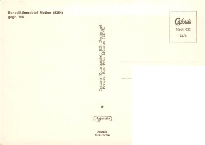 73882282 Metten Donau Benediktinerabtei postalisch nicht gelaufen Fliegeraufnahme Erhaltung siehe scans [FriedD77] KatCode: 11110009271132