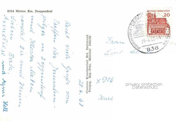 72616613 alte Postkarte Metten Donau Fliegeraufnahme postalisch gelaufen Erhaltung siehe scans [FriedD77] KatCode: 11110009271132