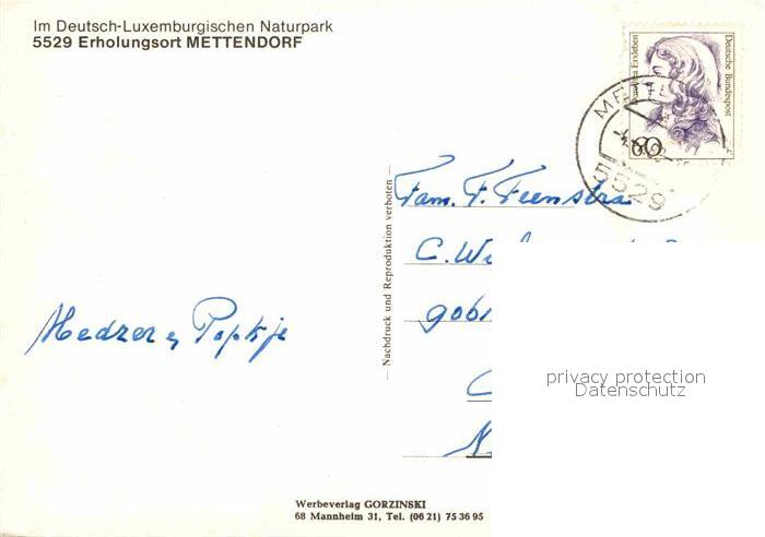 72870326 alte Postkarte Mettendorf Eifel Ortspartien postalisch gelaufen Erhaltung siehe scans [LiesaD40] KatCode: 11110007232080