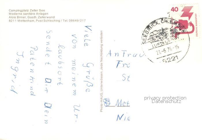 73645385 alte Postkarte Mettenham Campingplatz Zeller See Sanitaere Anlagen Seepartie postalisch gelaufen Erhaltung siehe scans [WerneD78] KatCode: 11110009189141