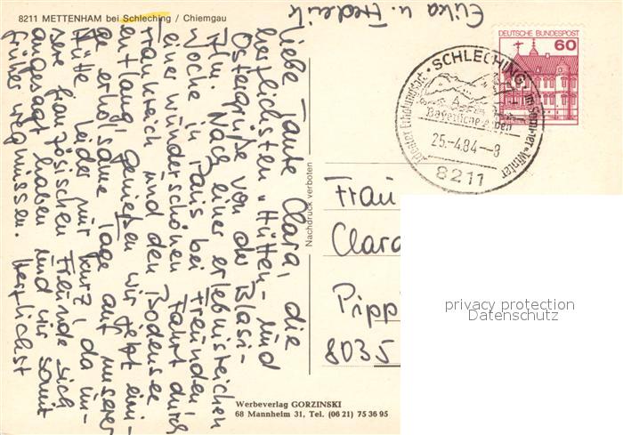 73671839 alte Postkarte Mettenham Ortsmotive postalisch gelaufen Erhaltung siehe scans [WerneD78] KatCode: 11110009189141