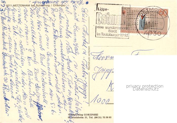 73736804 alte Postkarte Mettenham Wohnhaeuser Blumenschmuck Chiemgauer Alpen postalisch gelaufen Erhaltung siehe scans [FriedD77] KatCode: 11110009189141