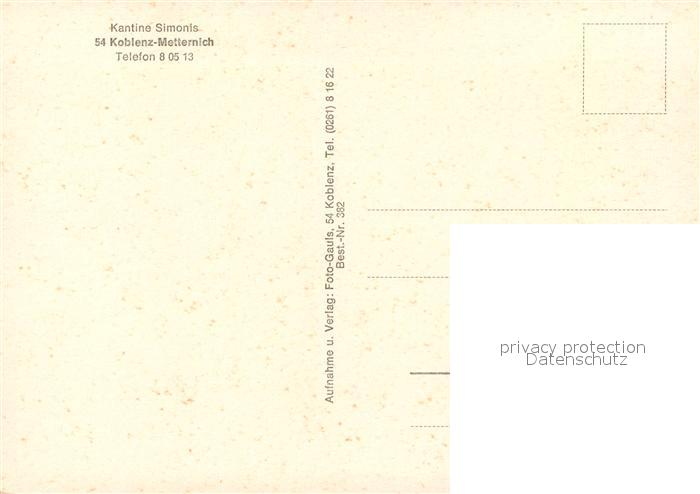 73083102 Metternich Koblenz Zentrallazarett Kantine Simonis postalisch nicht gelaufen Erhaltung siehe scans [NatalD47] KatCode: 11110007111000