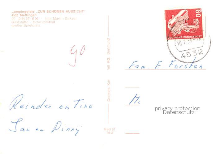 73866521 alte Postkarte Mettingen Westfalen Campingplatz Zur schoenen Aussicht Fliegeraufnahme Freibad Bar Billardzimmer postalisch gelaufen Erhaltung siehe scans [WerneD78] KatCode: 11110005566056