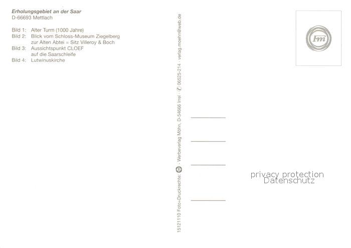 73230466 Mettlach Alter Turm Alte Abtei Aussichtspunkt Cloef Lutwinuskirche postalisch nicht gelaufen Erhaltung siehe scans [KathaD81] KatCode: 11110010042114