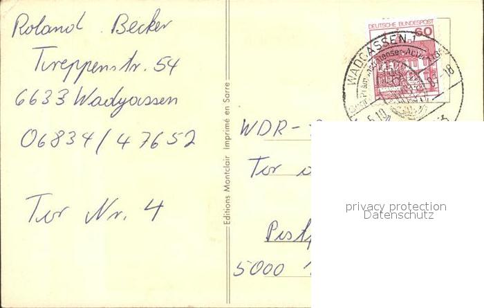 72270999 alte Postkarte Mettlach Alter Turm Grabkapelle des hl Herzog und Bischof Lutwinus postalisch gelaufen Erhaltung siehe scans KatCode: 11110010042114
