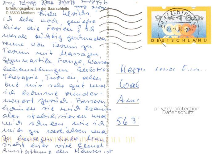 73725727 alte Postkarte Mettlach Fliegeraufnahme mit Dreisbach Saarschleife und Reha Klinik postalisch gelaufen Erhaltung siehe scans [WerneD78] KatCode: 11110010042114