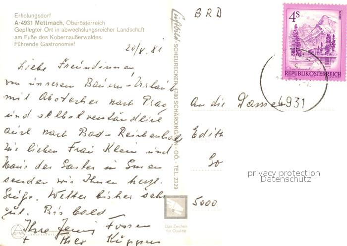 13212952 alte Postkarte Mettmach Fliegeraufnahme postalisch gelaufen Erhaltung siehe scans [LiesaD40] KatCode: 11390311041215
