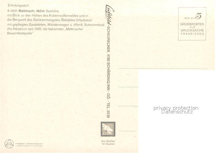 73721948 Mettmach Fliegeraufnahme Kobernausserwald postalisch nicht gelaufen Erhaltung siehe scans [LiesaD40] KatCode: 11390311041215