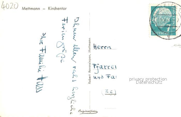 73688681 alte Postkarte Mettmann Kirchentor postalisch gelaufen Erhaltung siehe scans [WerneD78] KatCode: 11110005158024