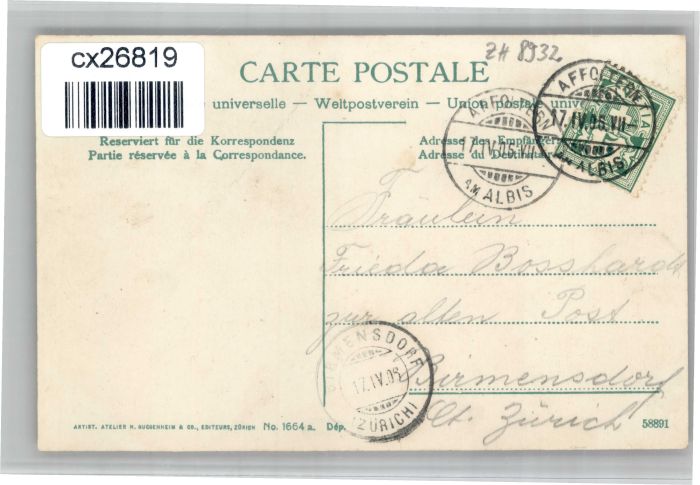 10850079 alte Postkarte Mettmenstetten Pension Restaurant Paradies postalisch gelaufen KatCode: 11470260860060