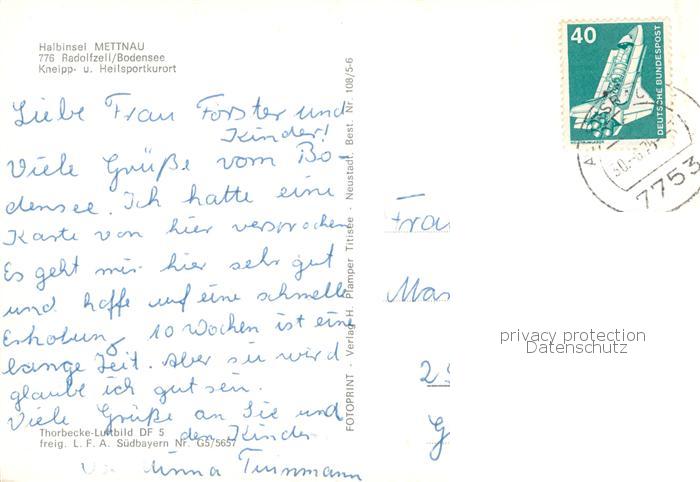 73764656 alte Postkarte Mettnau Radolfzell Bodensee Fliegeraufnahme Halbinsel postalisch gelaufen Erhaltung siehe scans [LiesaD40] KatCode: 11110008335063