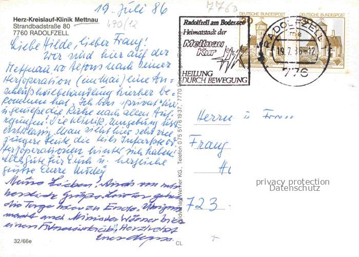 74044814 alte Postkarte Mettnau Radolfzell Bodensee Herz Kreislauf Klinik Aufenthaltsraeume Fliegeraufnahme Hallenbad postalisch gelaufen Erhaltung siehe scans [WerneD78] KatCode: 11110008335063