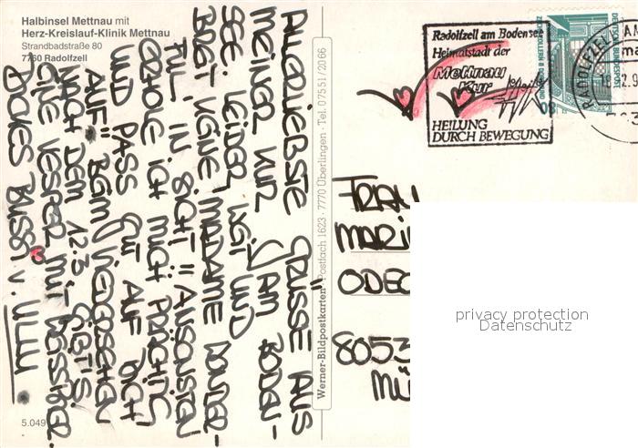 73741280 alte Postkarte Mettnau Radolfzell Bodensee Herz Kreislauf Klinik Mettnau Fliegeraufnahme postalisch gelaufen Erhaltung siehe scans [FriedD77] KatCode: 11110008335063