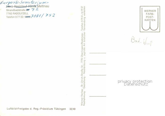 72616487 Mettnau Radolfzell Bodensee Herz Kreislauf Klinik Park Fliegeraufnahme postalisch nicht gelaufen Erhaltung siehe scans [FriedD77] KatCode: 11110008335063