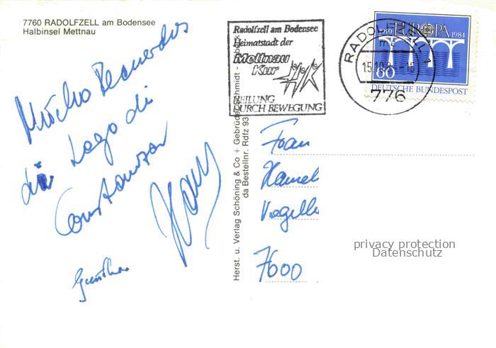 74028527 alte Postkarte Mettnau Radolfzell Bodensee Luftaufnahme Halbinsel Hotel Restaurant am Wasser postalisch gelaufen Erhaltung siehe scans [FriedD77] KatCode: 11110008335063
