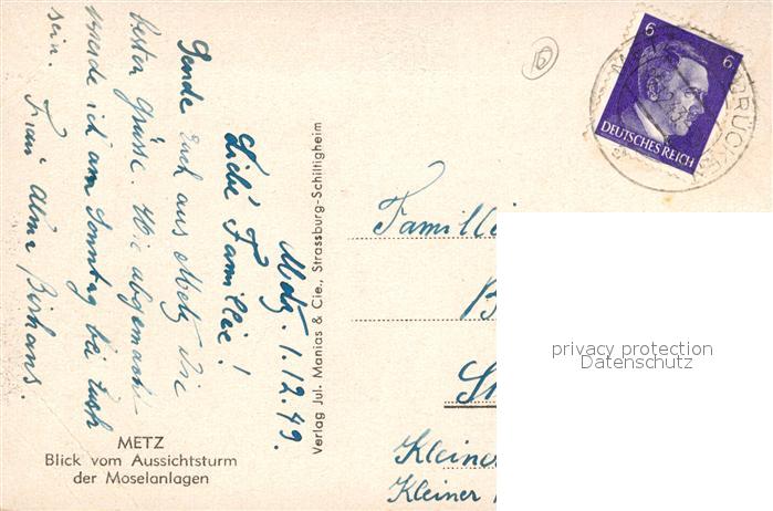 13512445 carte postale Metz 57 Moselle Blick vom Aussichtsturm der Moselanlagen postalisch gelaufen Erhaltung siehe scans [FriedD77] KatCode: 11170057957463