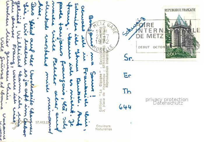 12709501 carte postale Metz 57 Moselle En passant par la Lorraine chanson Noten Lied Wappen postalisch gelaufen Erhaltung siehe scans [FriedD77] KatCode: 11170057957463
