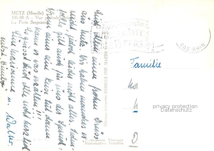 12969619 carte postale Metz 57 Moselle Fliegeraufnahme Porte Serpenoise postalisch gelaufen Erhaltung siehe scans [NatalD47] KatCode: 11170057957463