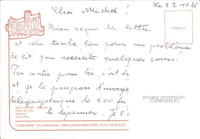 12138308 Metz 57 Moselle Hotel de Ville Rathaus bei Nacht postalisch nicht gelaufen Erhaltung siehe scans KatCode: 11170057957463