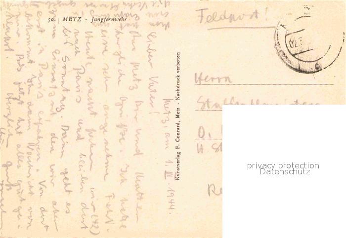 12665042 carte postale Metz 57 Moselle Jungfernwehr postalisch gelaufen Feldpost Erhaltung siehe scans [WerneD78] KatCode: 11170057957463