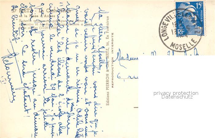 13513232 carte postale Metz 57 Moselle La Cathedrale Dom postalisch gelaufen Erhaltung siehe scans [FriedD77] KatCode: 11170057957463